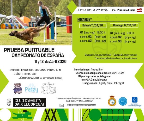 - Ubicación: Club d’Agility Baix Llobregat (El Prat de Llobregat, Barcelona).