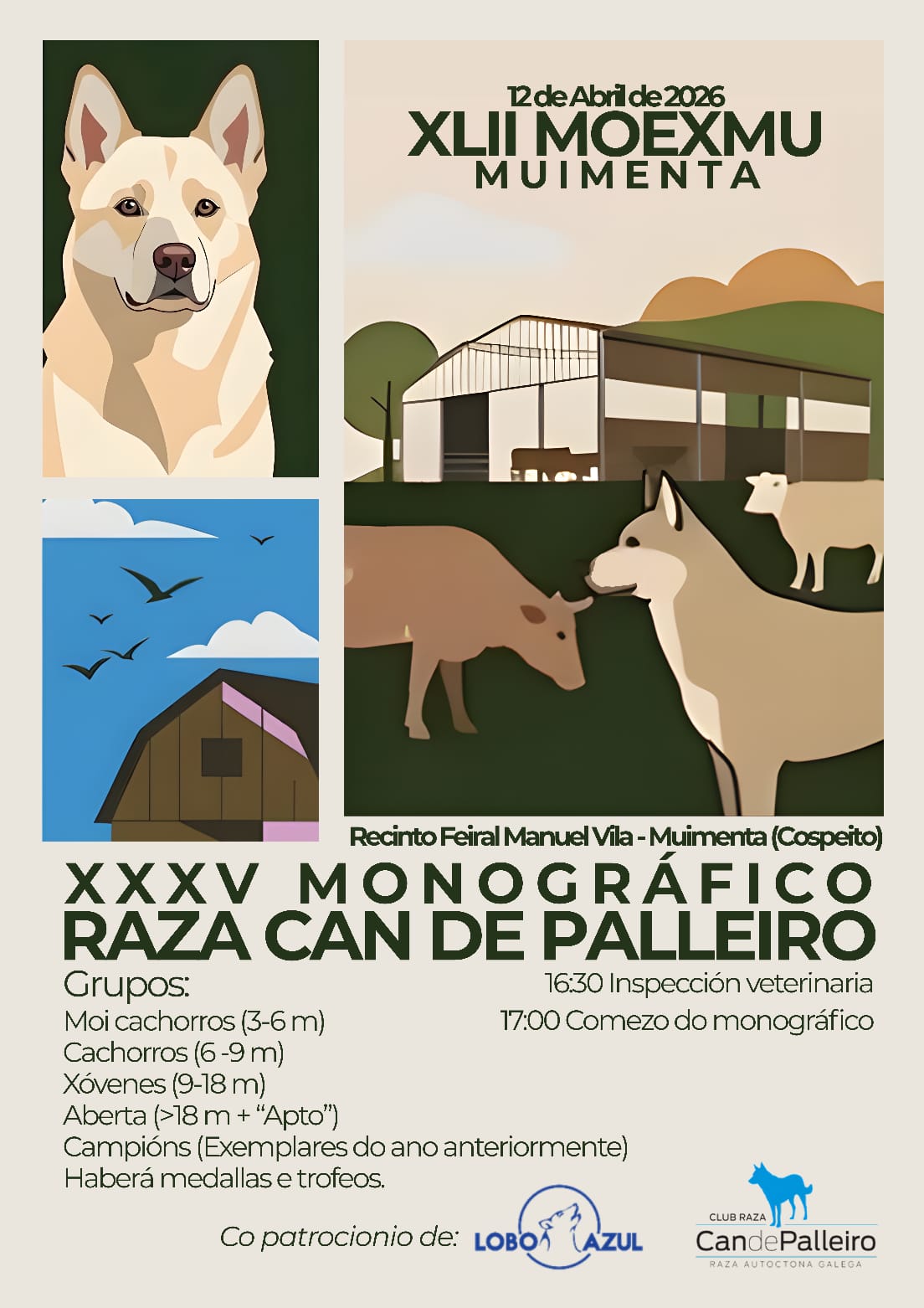 Galicia se prepara para una de sus citas más significativas en el calendario de razas autóctonas. El próximo 12 de abril de 2026, el Recinto Feiral Manuel Vila de Muimenta (Cospeito) acogerá el XXXV Concurso Monográfico de la Raza Can de Palleiro. Este evento, integrado en la Muestra Exposición MOEXMU, es una prueba fundamental, ya que es valedera para el prestigioso trofeo «Can de Palleiro/a del año en Galicia».
