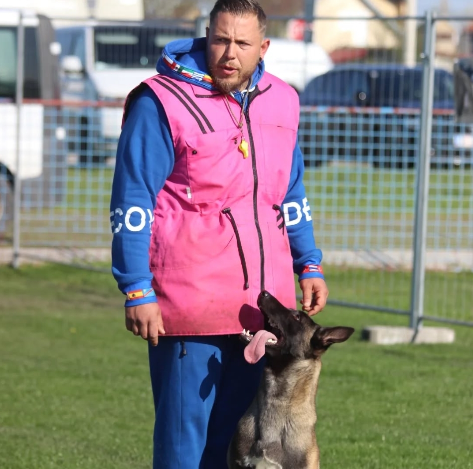 David Ramos: Soy un entrenador canino que en la actualidad se dedica a los perros detectores, además de colaborar con distintas instituciones de las Fuerzas Armadas y FFCCSSEE. Mi pasión por el Mondio nació cuando tenía unos 20 años. Siempre supe que me quería dedicar a los perros; de pequeño pasaba los días jugando con los Pastores Alemanes de mi abuelo. Un día vi una exhibición de Mondioring, me enamoré de la disciplina y de los Malinois y, por suerte, a través de un amigo entré en mi primer club.