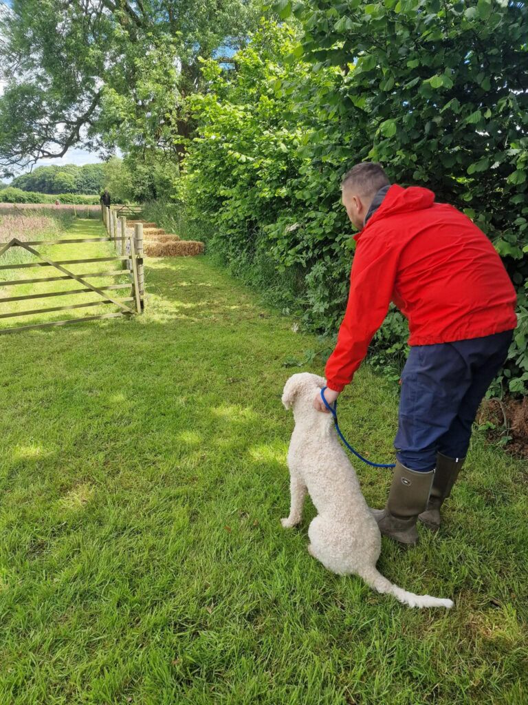 Aarron Kehoe: Mi entrada en el mundo de las exposiciones fue tardía. Crecí con Dobermans, pero mi mujer no compartía ese entusiasmo por la raza. En 2014, mientras paseábamos por el centro de Chester, vimos a alguien con lo que solo puedo describir como una bola de energía blanca brillante, rizada y saltarina. Nos detuvimos para preguntar qué raza era y así fue como descubrimos al Perro de Agua Español y quedé completamente enganchado. Aun así, no fue una decisión impulsiva; pasamos años asistiendo a quedadas con aficionados de la raza y hablando con criadores antes de dar el paso de tener un perro de esta raza.