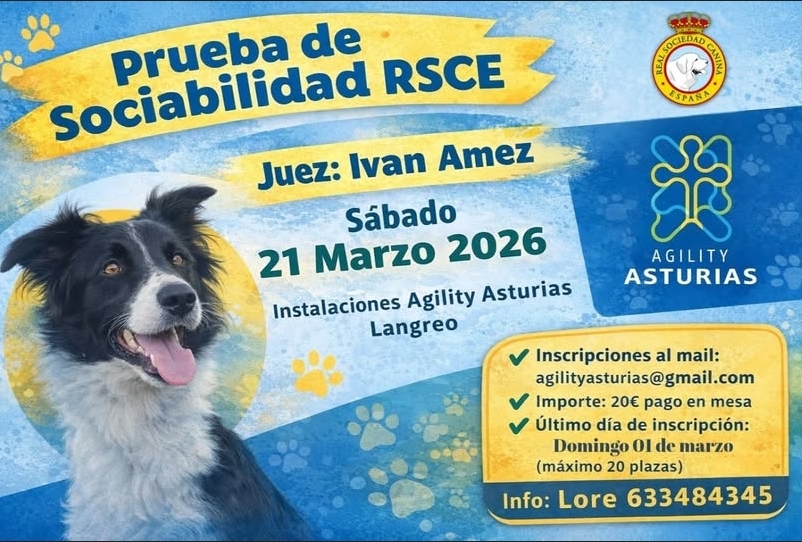 • Contacto para inscripciones: A través del correo electrónico agilityasturias@gmail.com.