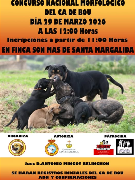 El próximo domingo 29 de marzo de 2026, la isla de Mallorca reafirmará su compromiso con una de sus razas más emblemáticas. El Club Español del Ca de Bou organiza el Concurso Nacional Monográfico de la raza, un evento que promete reunir a los mejores ejemplares de este poderoso y noble moloso en un entorno inmejorable: la Finca Son Mas, en Santa Margalida.